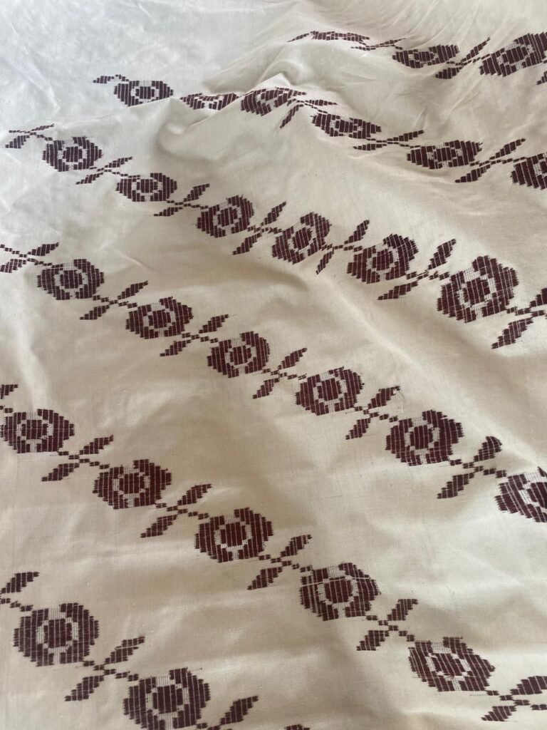 To create this woven fabrics involves three main stages: preparing the threads, setting up the warp threads, and weaving. This process requires not only skilled hands but also remarkable patience.